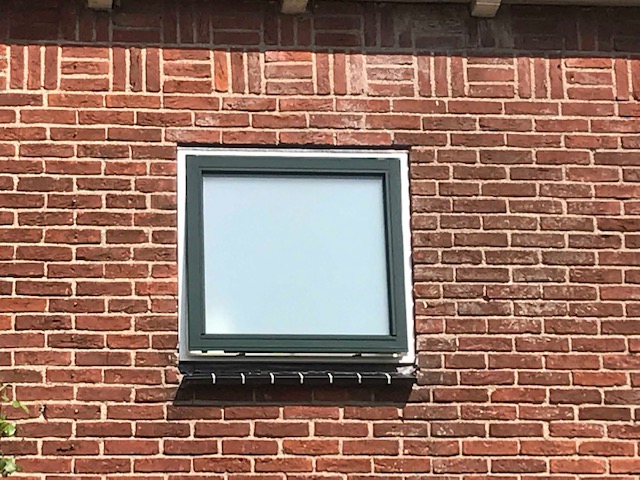 In dit woonhuis in Bussum zijn de kozijnen aan vervanging toe. De bewoonster is eerst begonnen met de vervanging van drie kozijnen met opendraaiende ramen op de eerste verdieping. Om privacy redenen is in het badkamerraam melkglas toegepast.